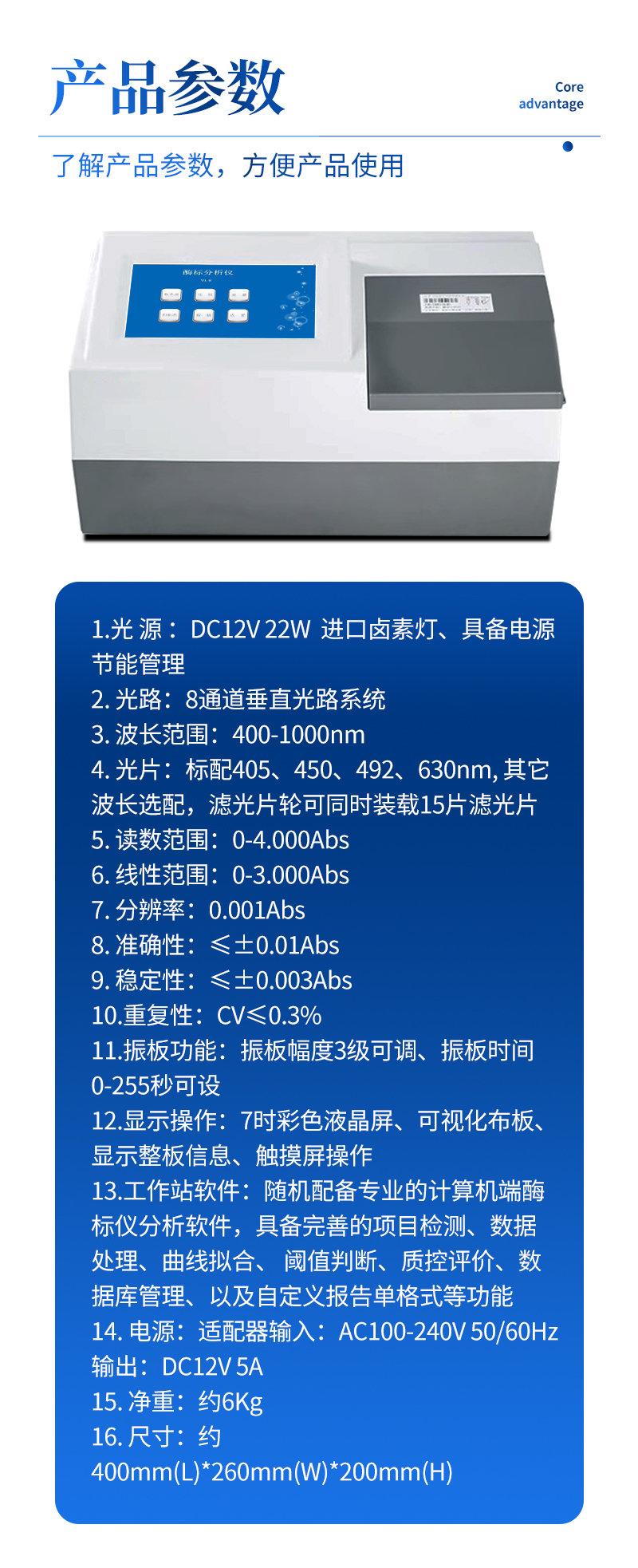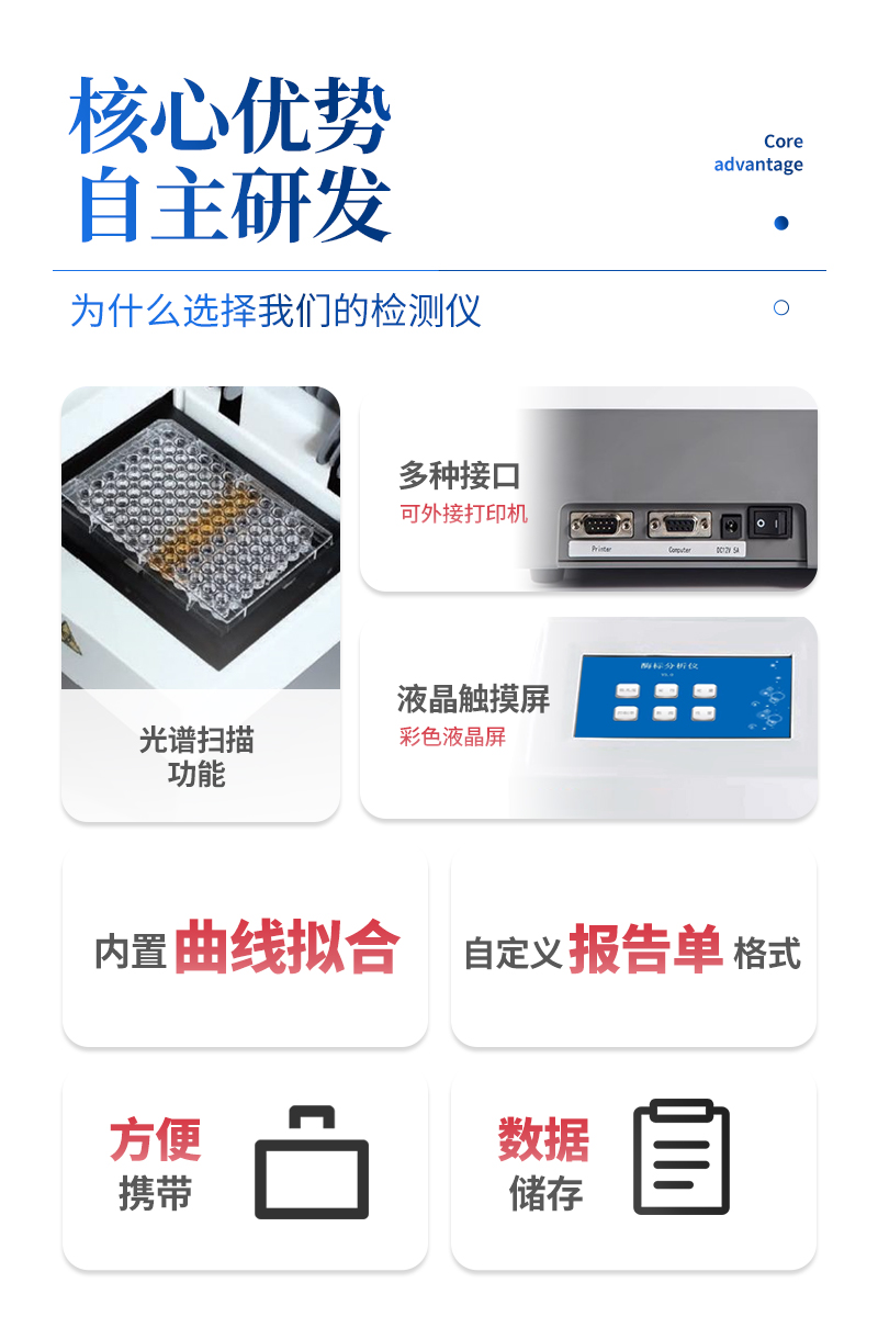 產(chǎn)品特點(diǎn)回設(shè)計(jì)精巧、操作簡(jiǎn)單、攜帶方便 回7時(shí)彩色液晶顯示、觸摸屏操作回板面可視化布板、測(cè)量數(shù)據(jù)整板顯示回中心定位、數(shù)據(jù)準(zhǔn)確、穩(wěn)定性好、重復(fù)性好回終點(diǎn)法、動(dòng)力學(xué)法、抑制率、單/雙波長(zhǎng)測(cè)量回采用寬電壓設(shè)···