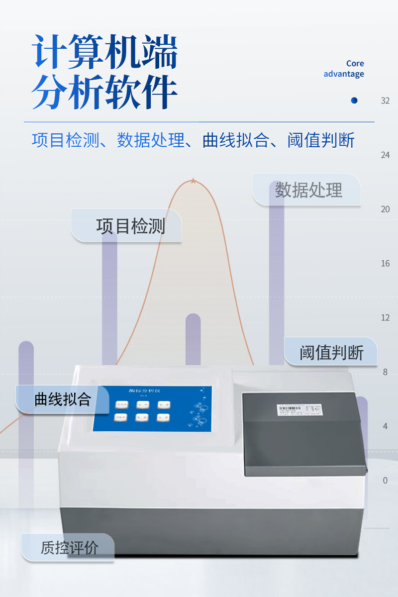 13.工作站軟件:隨機(jī)配備專業(yè)的計(jì)算機(jī)端酶標(biāo)儀分析軟件,具備完善的項(xiàng)目檢測(cè)、數(shù)據(jù)處理、曲線擬合、 閾值判斷、質(zhì)控評(píng)價(jià)、數(shù)據(jù)庫(kù)管理、以及自定義報(bào)告單格式等功能